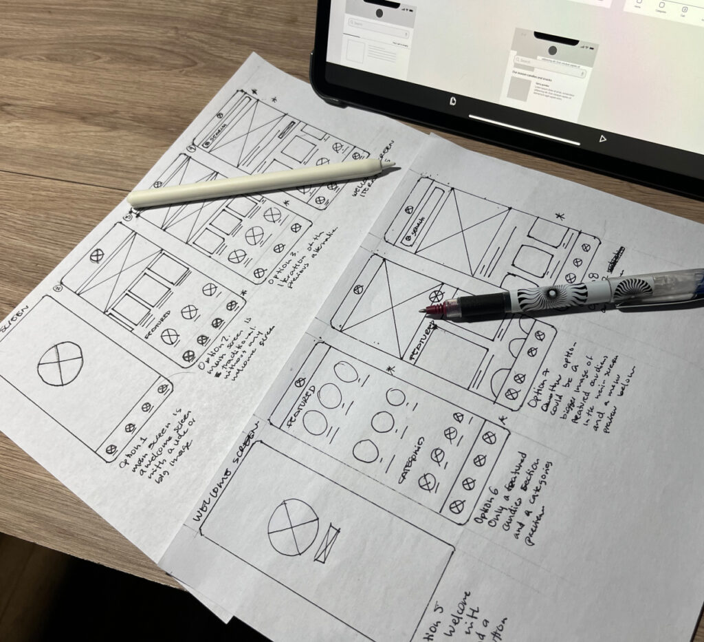 Once the investigation process allowed us to find improvement points and confirmed the main hypothesis that a digital product could help to improve the client’s experience and help to grow Pikaku’s presence. We proceed with the design process which started with a series of paper wireframes and then digital wireframes that helped us to verify some user interactions with the product and then design some mockups and high-fidelity prototypes to create the MVP and validate the product usability.