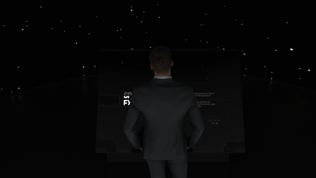 The immersive dome enhances the user’s experience by using authentic space sounds recorded from various missions, guiding them through the history and discoveries of space probes.