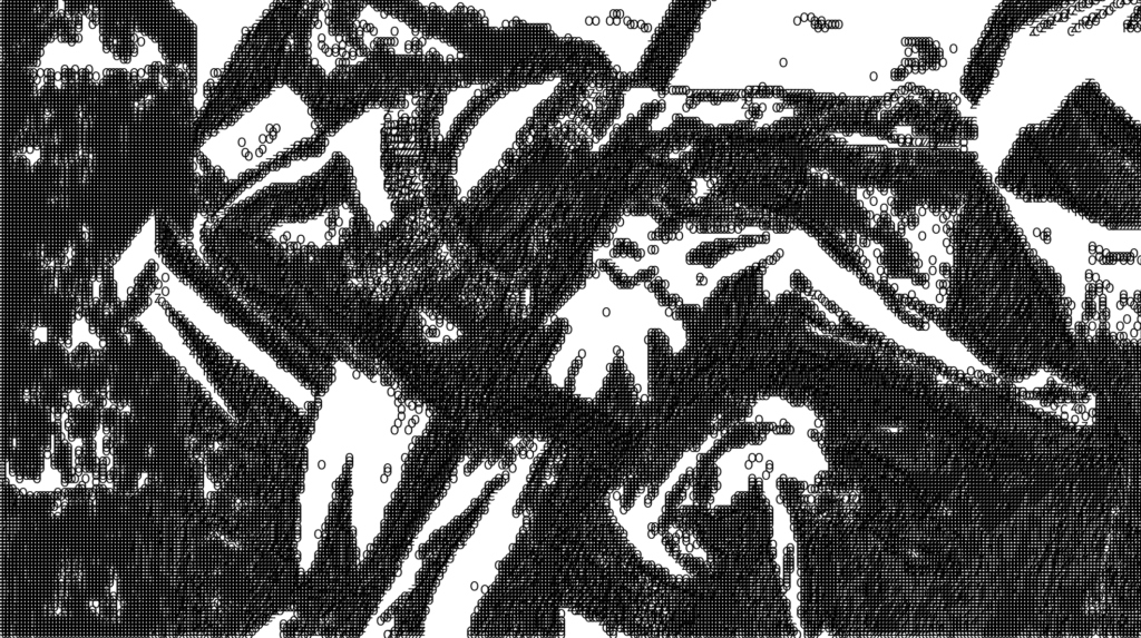Starting with an example reviewed in class, in this visualization I experiment with the distance between texts and their density to try to generate a more precise visualization of the work of Mexican muralist José Clemente Orozco.